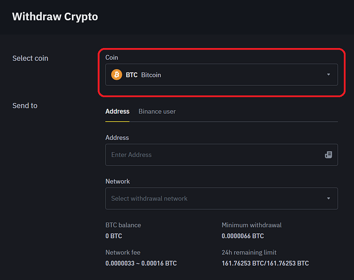 Now, navigate back to the Binance page and paste the address into the Address box, which should prompt the correct Network to appear right below, that is, the Polkadot Asset Hub as shown in the screenshot below.